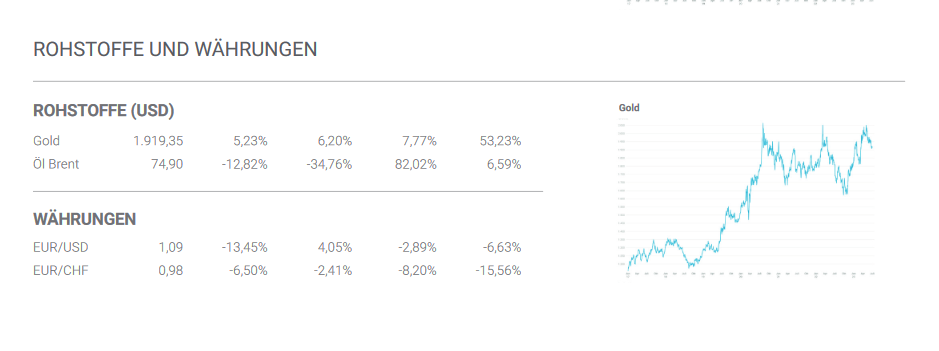 Bis auf wenige Ausnahmen nahm der Inflationsdruck bei vorlaufenden Preisindikatoren als auch den Verbraucherpreisen im Verlauf des Quartals ab. Entwicklungen im Rohstoffsektor waren dabei mitentscheidend. Im Sektor der Industriemetalle kam es im Quartalsvergleich zu leichten Preiseinbußen (Kupfer, Nickel, Aluminium).  Im sensiblen Energiesektor ergaben sich Entspannungen. So notierte die Nordseeölsorte Brent am Ende des 1. Quartals 2023 bei 73,60 EUR, aktuell bei 67,80 EUR. Auch die Erdgaspreise waren in Europa im Quartalsvergleich weiter leicht rückläufig.
